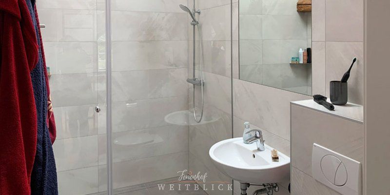 Die Ferienwohnung "Zum Schäfchen" befindet sich auf der rechten Seite des Gebäudes, vom Feld aus gesehen. Sie ist erreichbar über die große Ost-Terrasse (35 m²), wo Sie Ihr Frühstück oder Abendbrot mit Weitblick aufs Land genießen oder die Schafe nebenan beobachten können.